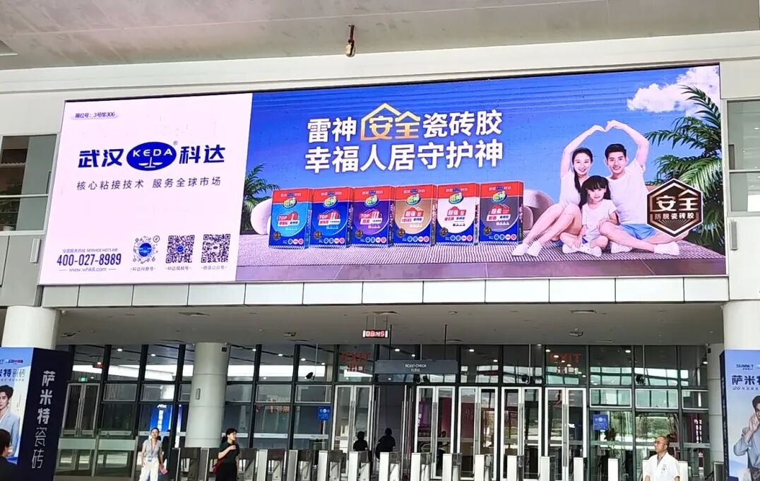展馆外,大型户外品牌画面同样抢眼,形成从里到外的全方位品牌露出。密集的品牌曝光不仅提升了科达在展会现场的辨识度,也向行业传递了深耕辅材赛道的信心与实力。