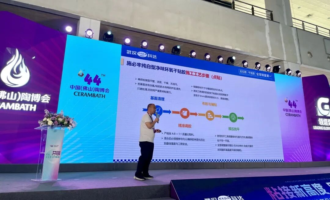 展会期间,科达在论坛区设立专场分享,围绕“瓷砖铺贴体系的全面解析”与“石材粘接与铺贴材料的创新应用”两大主题展开讲解。